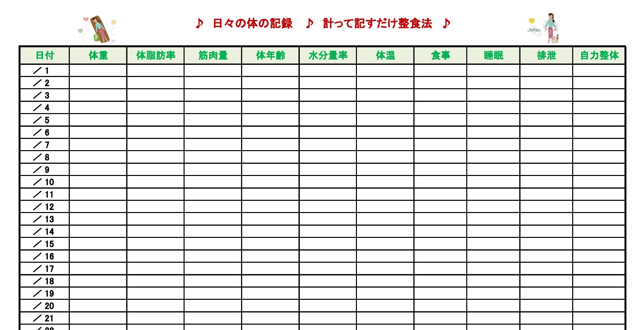 メルマガ読者ページから【からだの記録通年版】のダウンロードできます。